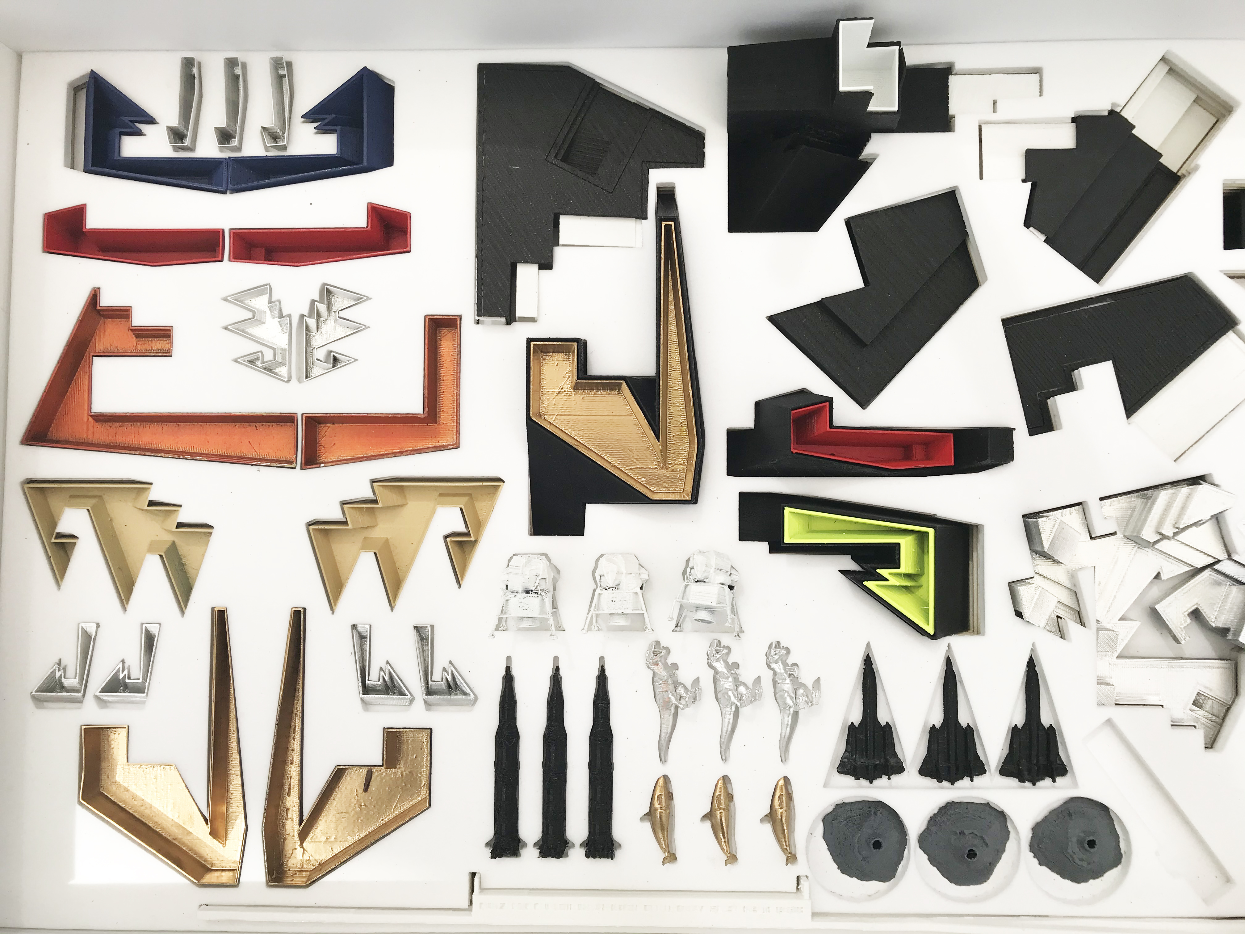 All parts are 3D printed and hand painted. They come in a box designed specifically for each project with care.