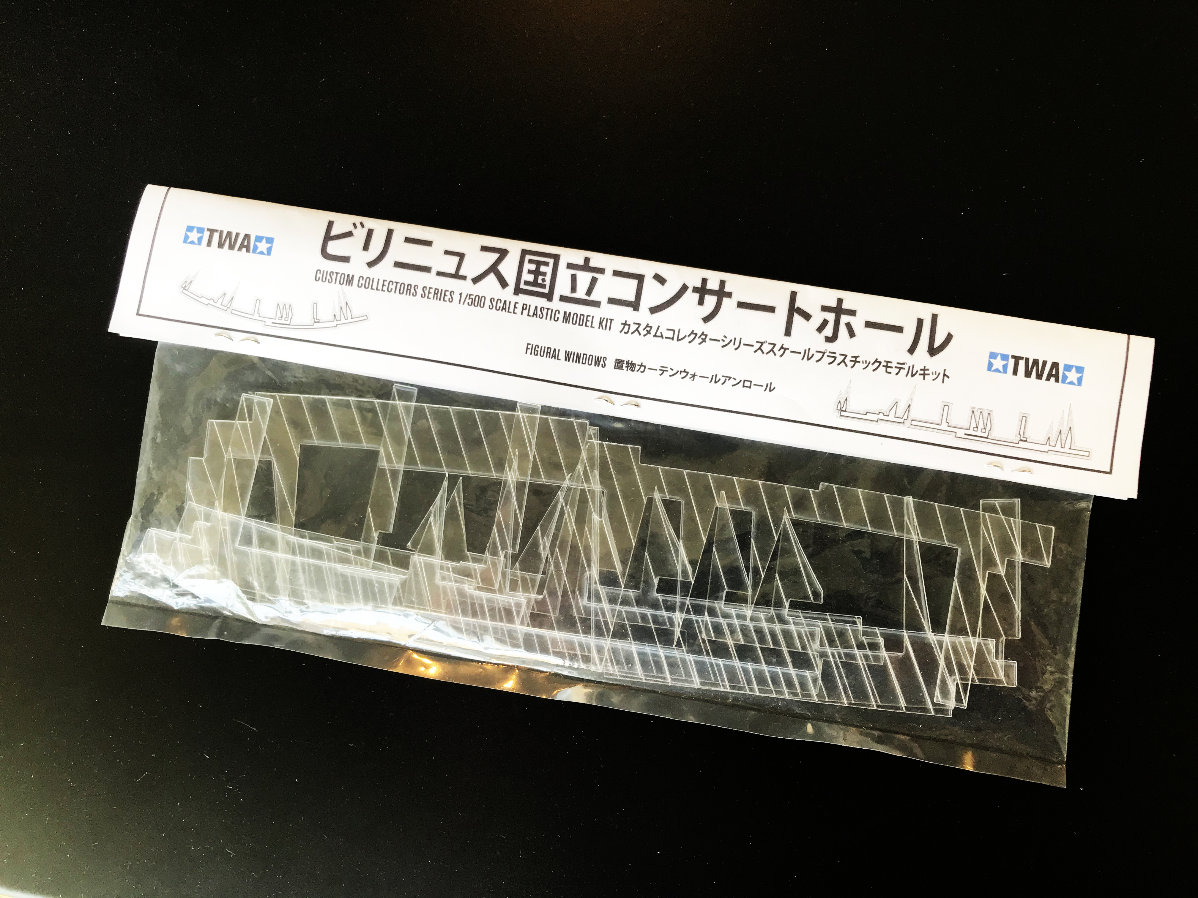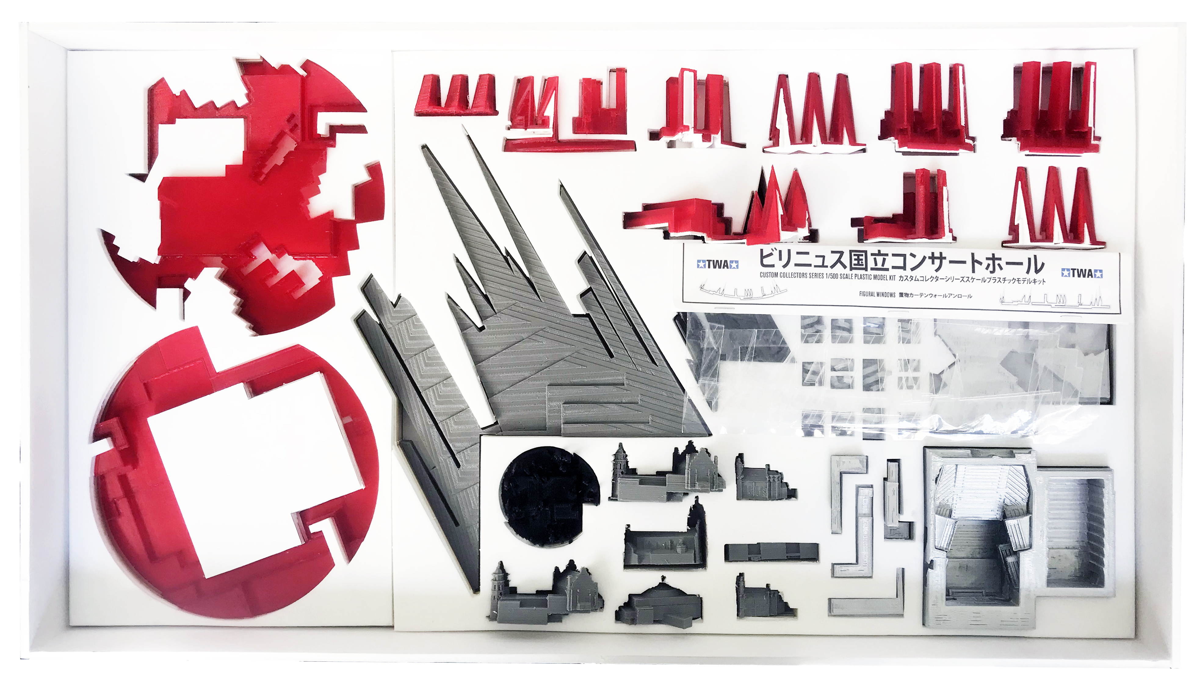 Special edition Vilnius Concert Hall 1/500 scale plastic model kit. Including Vilnius city skyline.